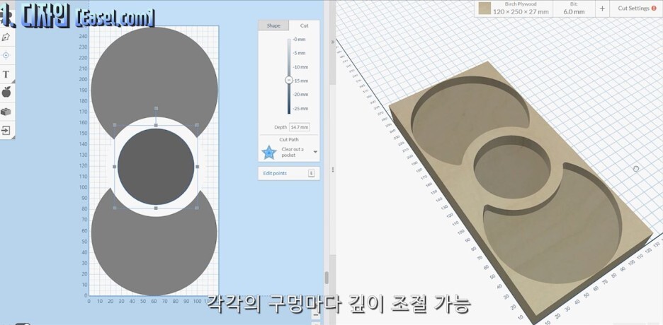 좌측에 디자인을 하면 어떻게 가공되는지