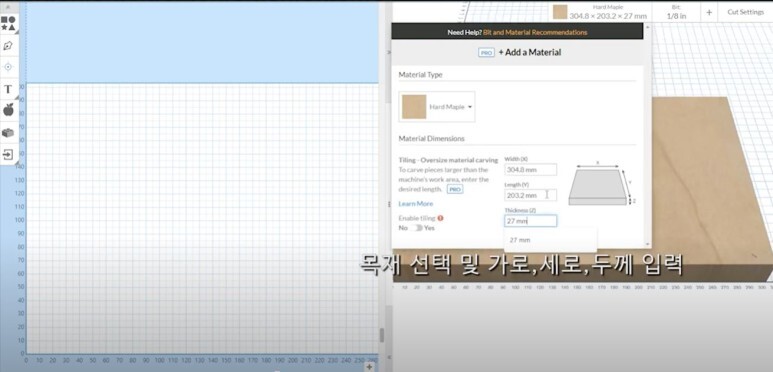 먼저 실제 크기의 목재 사이즈 입력