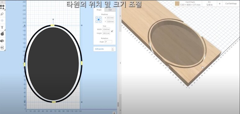 사이즈에 맞는 접시 안쪽 타원을 만들고